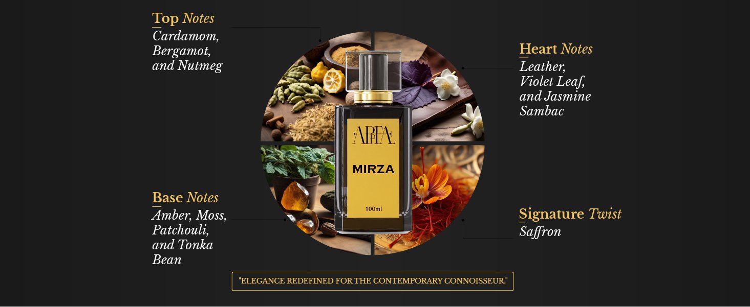 Inspired by Persian heritage, Mirza is more than a fragrance, it’s a symbol of power, strength, and regality. Its deep, dark accords with golden warmth evoke the presence of a true nobleman. Step into a world where scent defines royalty.